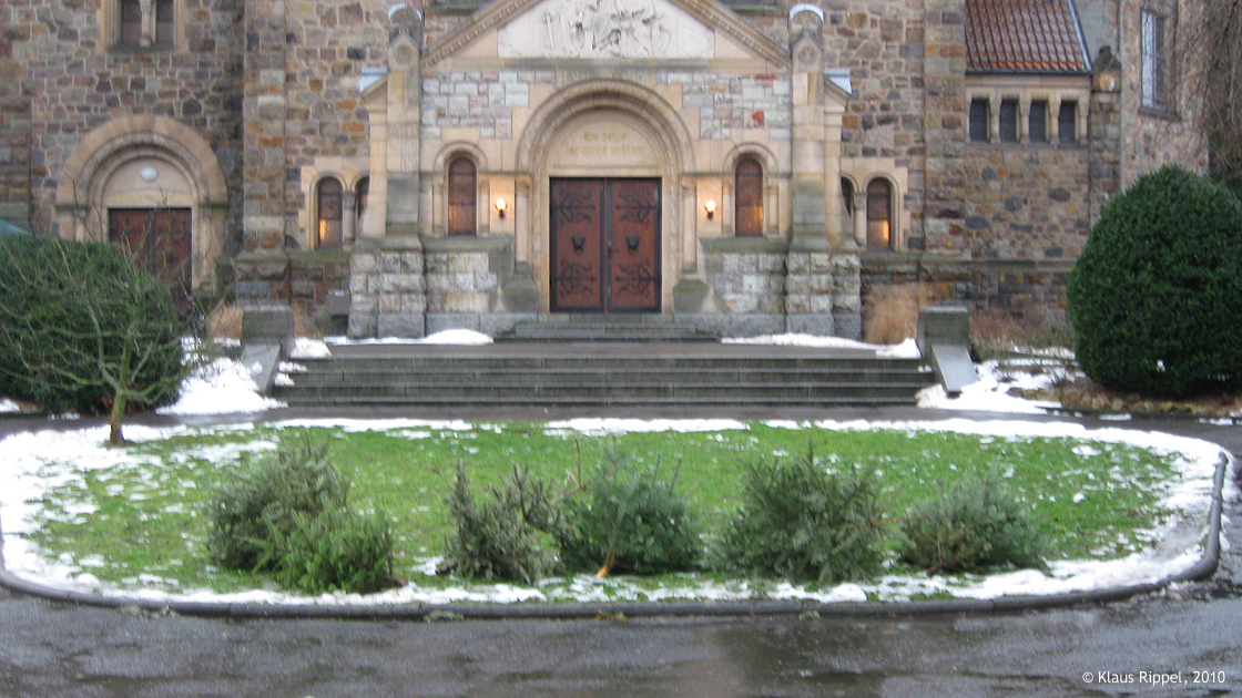 Vor der Peterkirche fliegen die Weihnachtsbäume